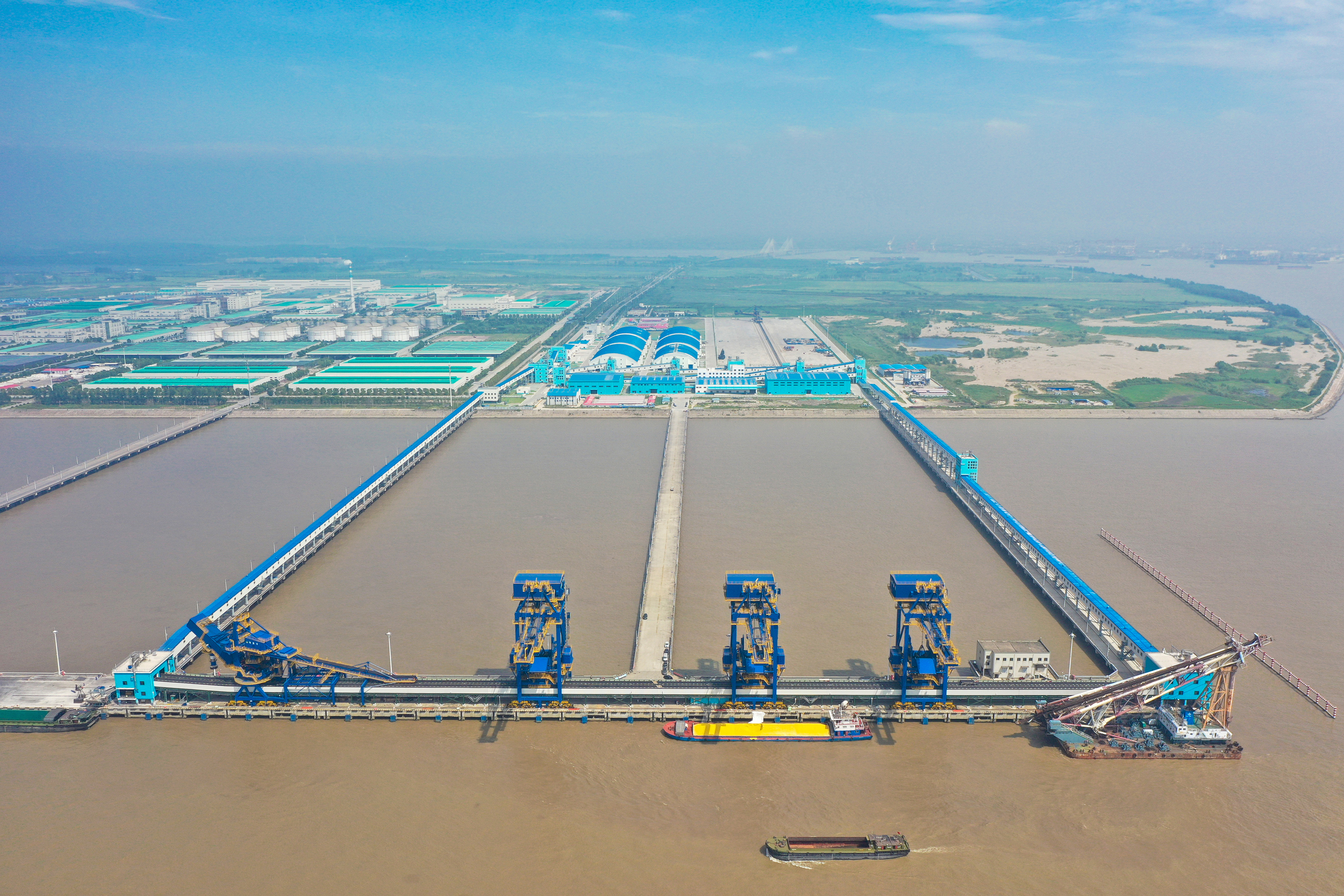 橫港沙3#-4#泊位改造工程是南通港(港口)集團(tuán)貫徹落實(shí)市委市政府“優(yōu)化沿江產(chǎn)業(yè)布局、推動(dòng)長(zhǎng)江大保護(hù)”工作要求,承接南通主城區(qū)老港區(qū)搬遷轉(zhuǎn)移的重點(diǎn)工程,主要建設(shè)1個(gè)7萬噸級(jí)和1個(gè)1萬噸級(jí)散貨泊位。項(xiàng)目于2018年3月開工建設(shè),積極應(yīng)用“四新”技術(shù)及信息化管理,在工程進(jìn)度、技術(shù)、安全、質(zhì)量、文明施工等方面創(chuàng)新突破,其“輸送機(jī)抑塵防雨覆蓋帶”等三項(xiàng)新技術(shù)應(yīng)用刷新全國(guó)紀(jì)錄,工藝系統(tǒng)在全國(guó)同類散貨裝卸碼頭中處于領(lǐng)先水平,榮獲江蘇省公路水運(yùn)工程平安工地建設(shè)省級(jí)“示范工程”、江蘇交通優(yōu)質(zhì)工程“蘇暢杯”等稱號(hào)。項(xiàng)目于2021年投產(chǎn)運(yùn)營(yíng)并獲批對(duì)外開放,傾力打造長(zhǎng)江沿線綠色環(huán)保、高效一流的現(xiàn)代化散貨專業(yè)碼頭,構(gòu)筑南通港高質(zhì)量轉(zhuǎn)型發(fā)展西部陣地“橋頭堡”。